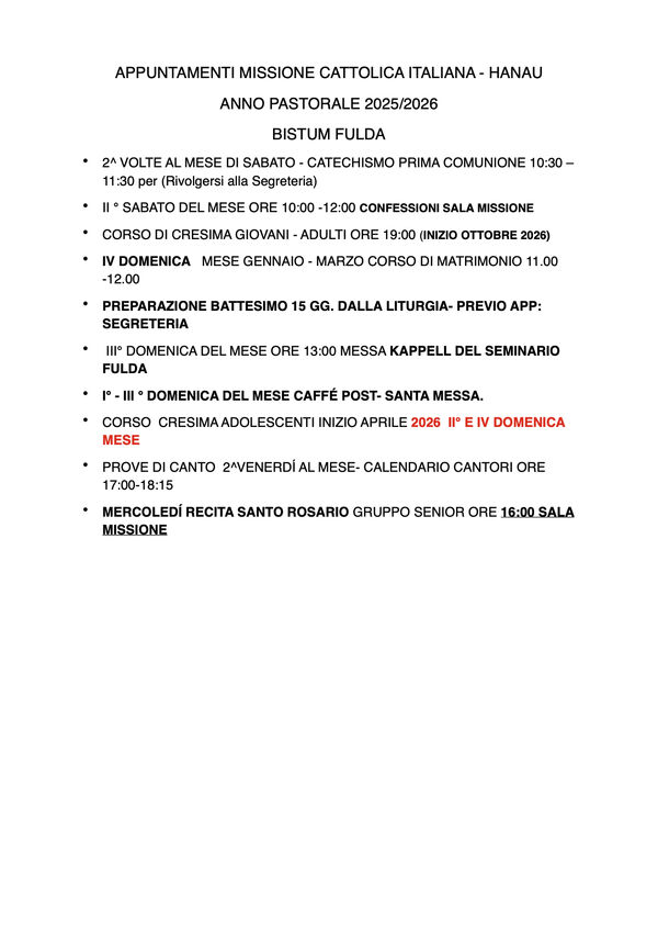 | Il sacramento del battesimi si celebra su richiesta delle famiglia concordando giorno e orario con il missionario | Die Taufen werden nach absprache mit der Familie zelebriert, Tag und Uhrzeit werden mit dem Missionar abgestimmt |
